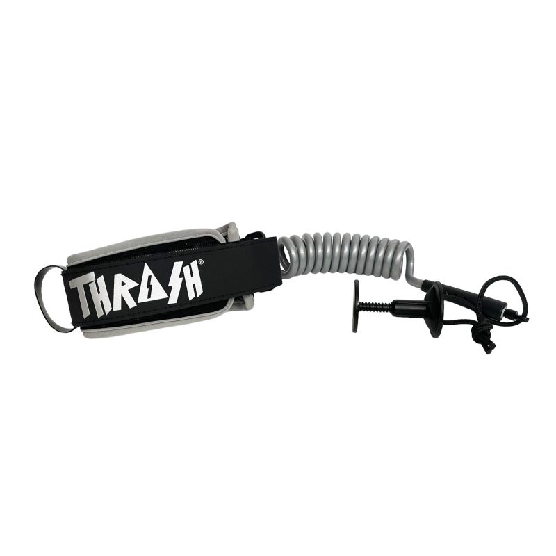 This Thrash biceps leash is made with a 7mm Urethane coil and silicon gel inside the cuff to avoid the leash to slip. The scratch system allows you to remove the leash while leaving the plug on, ideal for transport.